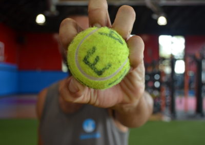 Set-up Instructions: Take a clean tennis ball and mark it with 7-9 different letters or numbers spaced evenly around the ball.