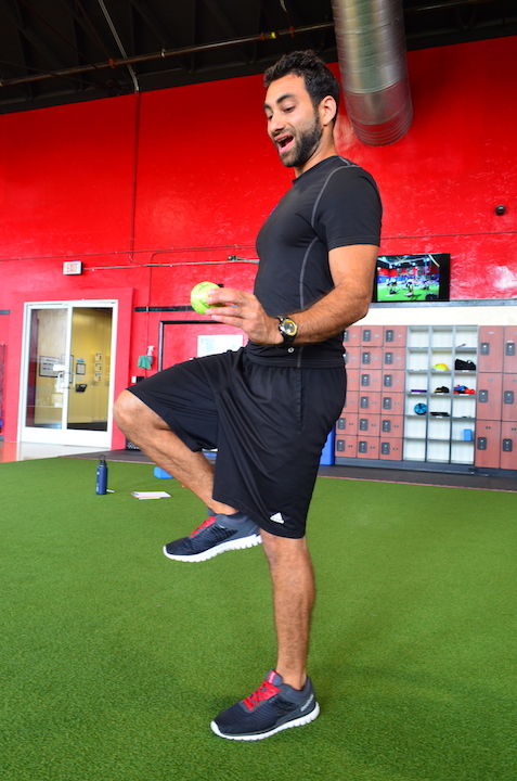 Step 1: Grab your letter ball and find either a wall or partner. Get into any sport-specific stance or an athletic-ready stance